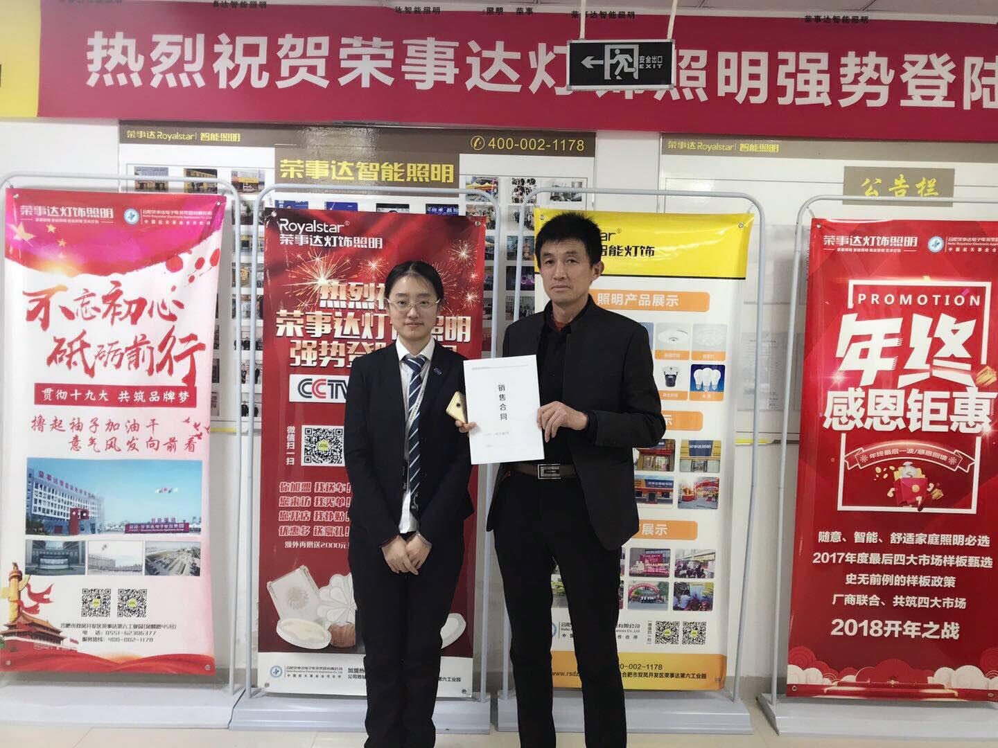 热烈祝贺张总签约荣事达灯饰照明