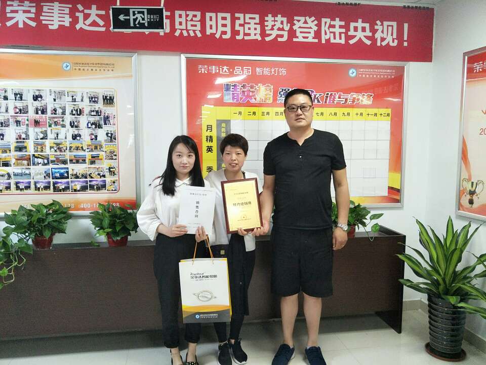 热烈祝贺胡总签约荣事达灯饰照明