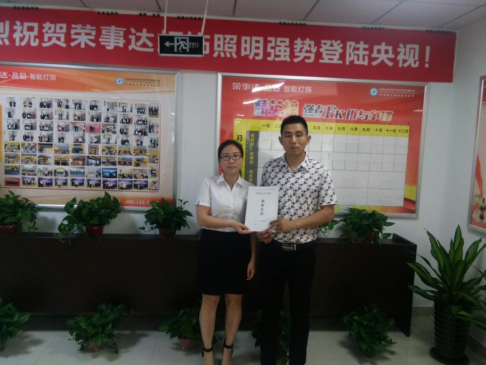 祝贺来自山东枣庄的张总成功签约荣事达灯饰照明