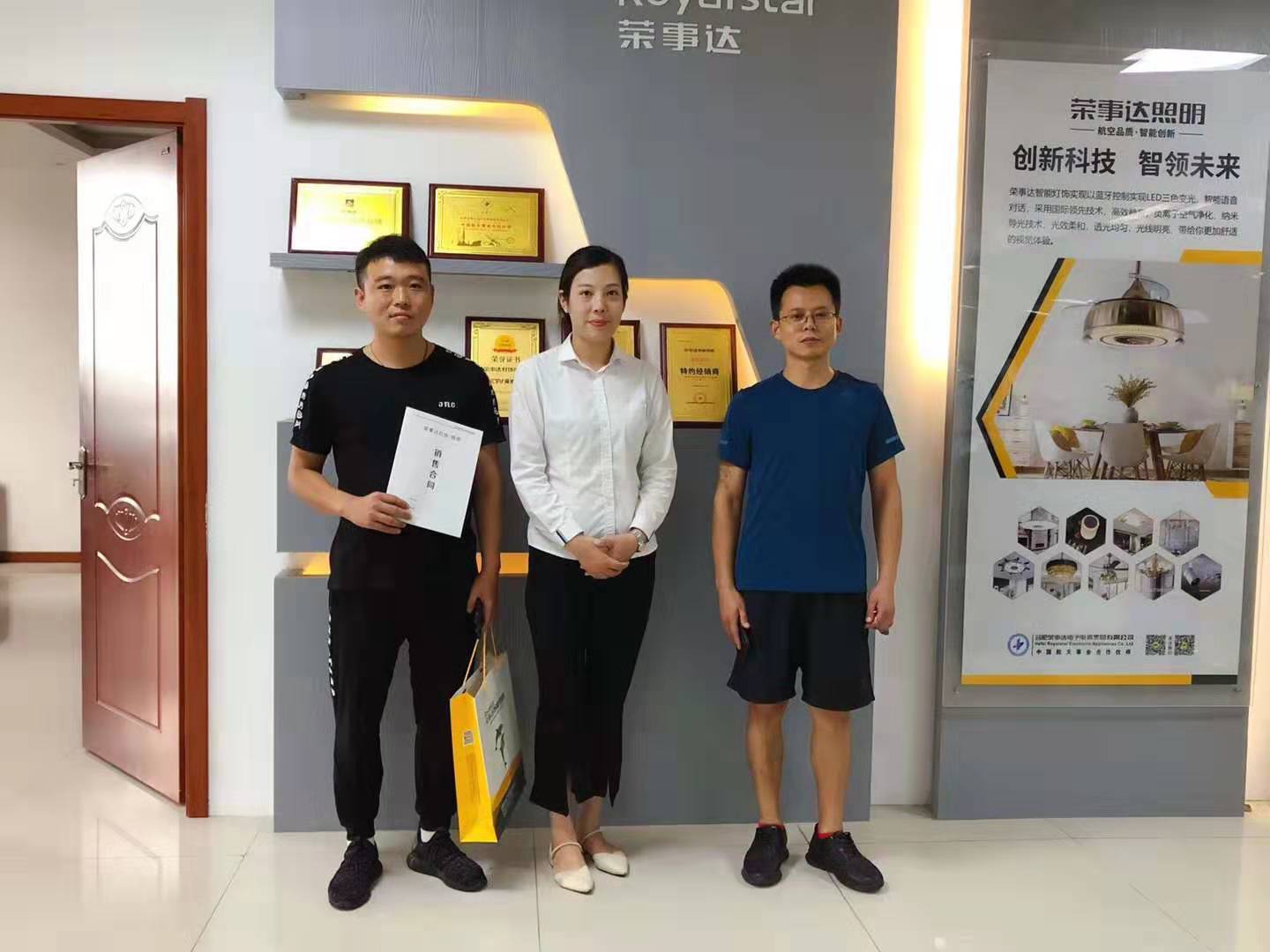 这个8月, 荣事达灯饰照明的加盟签约商来访不断。祝贺来自河南的王总成功签约荣事达灯饰照明,成为我们的经销商!在此也预祝王总生意兴隆,财源广进。