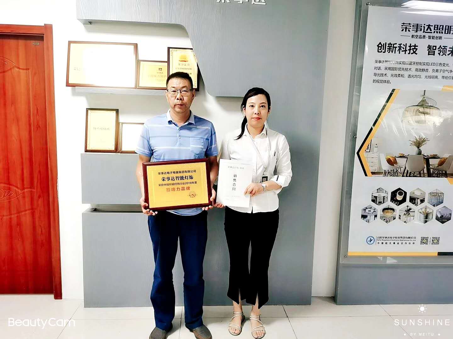 热烈祝贺杨总和姜总签约荣事达灯饰照明