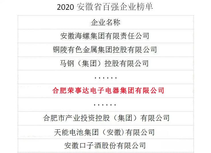 荣事达电子电器集团荣登安徽创新企业100强榜单