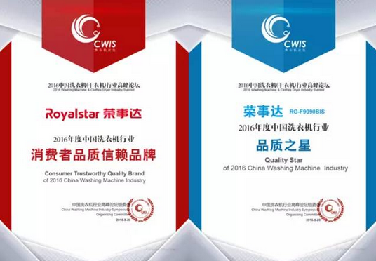 进入2016年,洗衣机行业整体仍呈现下滑态势,竞争愈加激烈。面对行业大环境下的新挑战,荣事达坚持品质立身,以好品质回馈消费者的信赖,赢得了消费者的持续信任。在当天的论坛上,荣事达品牌当选为“消费者品质信赖品牌”,荣事达RG-F9090BIS则获评为“品质之星”。