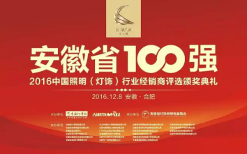 12月8日,2016年中国照明(灯饰)行业100强经销商颁奖典礼(安徽站),暨中国LED行业高峰论坛在安徽合肥隆重举行,本次活动由古镇灯饰报社、古镇灯饰MALL主办,安徽省灯饰照明电器商会承办,荣事达智能照明作为获奖企业应邀出席了本次颁奖盛典。