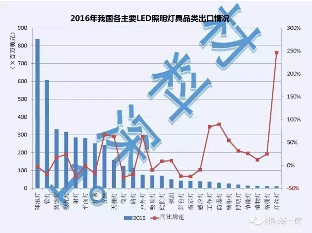 从出口数据也可以看出,2016年灯丝灯出口总额较2015年同比增长了246%,是所有灯具种类中增速最快的。