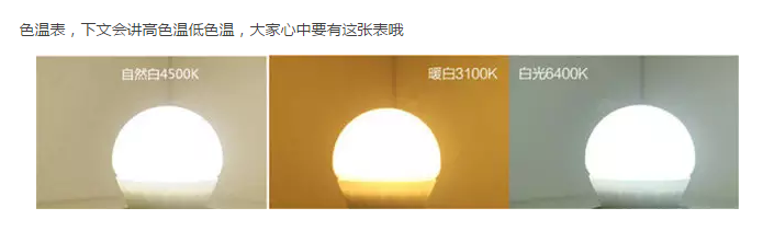 色温:光源光色的尺度(也就是黄白光)照度:光照强度(亮不亮)显色性:还原色彩的能力(物品颜色真不真)