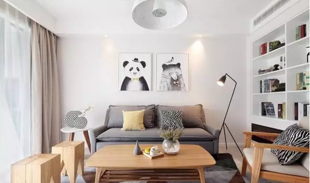 次光源突出客厅亮点:比如沙发背景墙上装射灯突出挂画,沙发旁的落地灯,沙发边及上放一个小台灯,这些次光源可以让你的客厅形成一个焦点区,从而让人忽略客厅里的其他缺陷