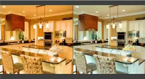 冷暖光源对比,左图是很常见的暖色家居光源,是大家比较喜欢的温馨感光源。但放在一起对比就可以看出,暖光源确实挺温馨的,但同时暖光源中会带有红色与橘色调,所以会削弱家居设计感,对比右图的冷光源,还是右图更时尚一点。