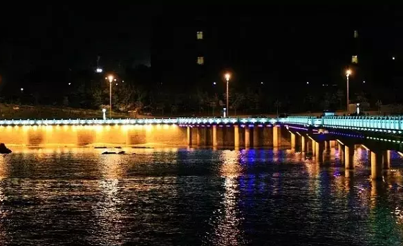 对于江、河、湖、海等自然水景而言,不可能将整个水面点亮,设计中主要采取反射岸边景物来凸显水体的存在和景观效果。