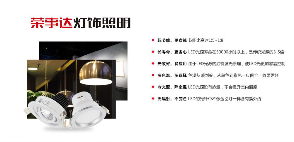 荣事达智能灯饰坐落于安徽省合肥市双凤开发区荣事达第六工业园。荣事达智能灯饰是荣事达电子电器集团有限公司旗下重点打造的核心项目,依托集团公司的研发能力与资金实力,整合集团家电研发制造经验,成为集研发、制造、营销和工程服务为一体的照明整体解决方案服务商。 荣事达智能灯饰以“诚信经营,共同发展”为企业经营准则,坚持品牌发展之路,注重产品品质;坚持继承“新和商”“零缺陷管理”和“红地毯售后服务”的“荣事达”经营管理理念;坚持“责任”价值体系,用爱心回报社会,致力于打造智能照明行业受尊敬品牌。 荣事达智能灯饰以客户为核心,整合客户多重需求,提供从制造、设计到环保的360度服务与协助,为客户量身打造优质产品,提升服务效率和质量,保证产品的质量与安全。其产品线涵盖以LED为主的商业照明、家居照明、灯饰照明、户外照明五大类别,实现了多元化、智能化、低碳化经营,凭借着富有创新意识的经营理念,力求改...