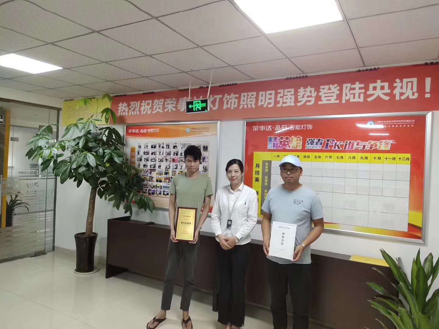 热烈祝贺陈总签约荣事达灯饰照明