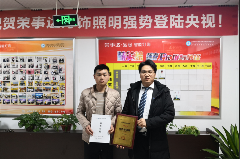 热烈祝贺粟总签约荣事达灯饰照明