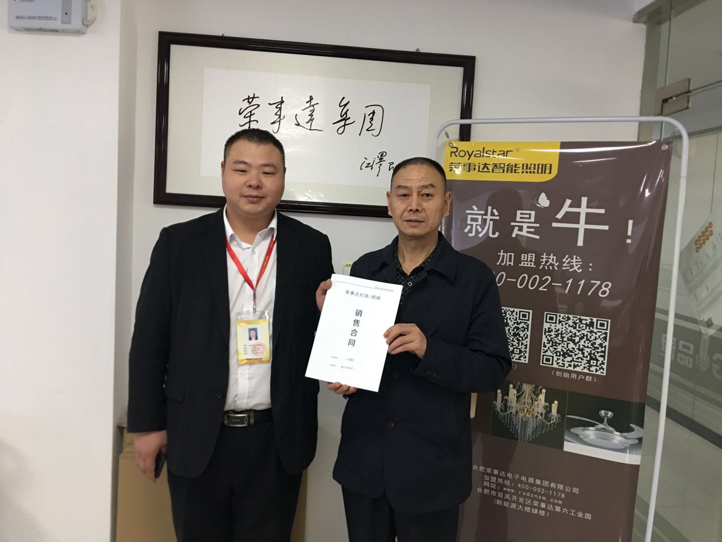 热烈祝贺张总签约荣事达灯饰照明