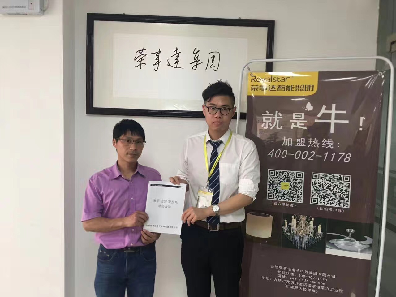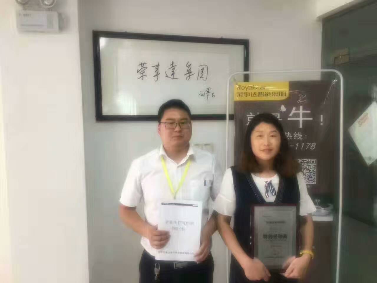 热烈祝贺程总签约荣事达智能照明